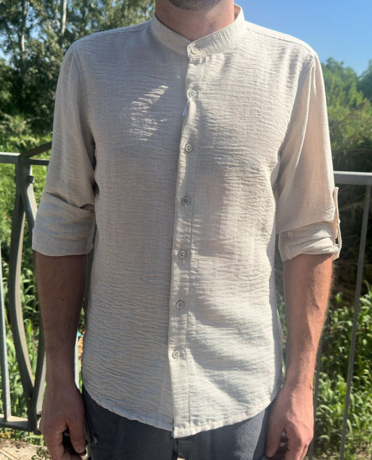 Camicia con collo coreano beige