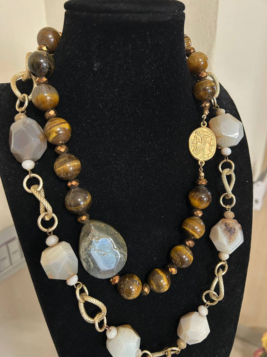 collana color oro inserto di ottone e pietre dure