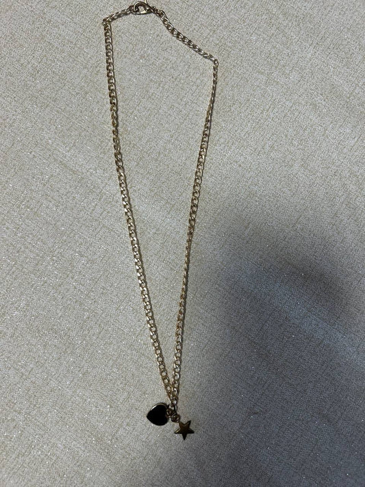 Collana girocollo con catena color oro, ciondolo stella e cuore nero