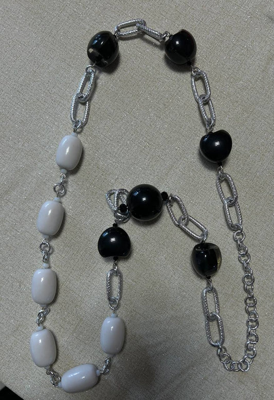 Collana girocollo grigio topo. Con inserto in argento e madreperla di Maiorca