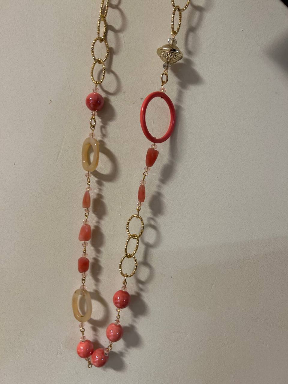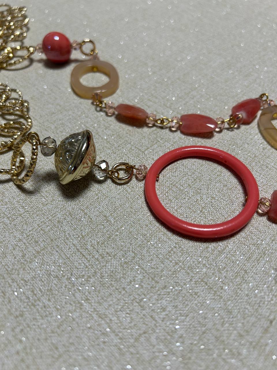 • Design: presenta anelli e sfere di diverse dimensioni e forme, con dettagli dorati.